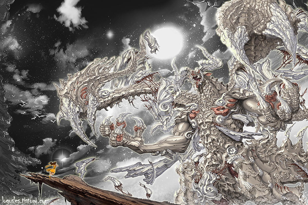 White dragon and girl by logosles